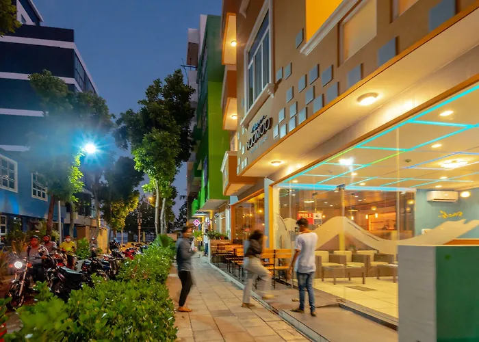 Das Hotel Noomoo Hulhumalé liegt in ungefähr 5 Gehminuten Entfernung vom Strand Tourist beach und bietet seinen Gästen eine Vielzahl von Freizeitmöglichkeiten, wie z. B. Windsurfen, Tiefseetauchen und Schnorcheln.